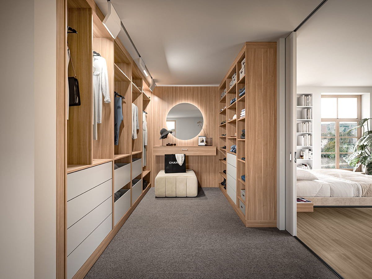 Wähle die Schrankart, die Du brauchst – ob Einbauschrank, Dachschrägenschrank oder Kleiderschrank. Entscheide Dich für den passenden Schranktyp, der zu Deinem Raum passt